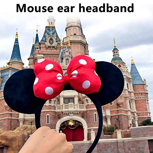 BESTZY 4 Pezzi Orecchie da Topolina Mickey Mouse Orecchie Fascia con Fiocco in Raso a Pois Bianchi e Rossi per Capelli Bambini Adulti Costume Carnevale Compleanno Cosplay Halloween