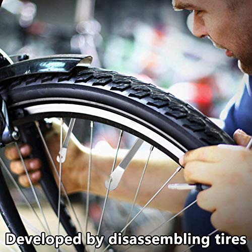 【Facile da usare】 La leva smussata per l'inserimento sotto il tallone e il gancio per raggio per mantenere la leva in posizione. Un'estremità è la leva inclinata per l'inserimento sotto le gomme, l'altra è il gancio per raggio per tenere in posizione la gomma, facile da usare.
