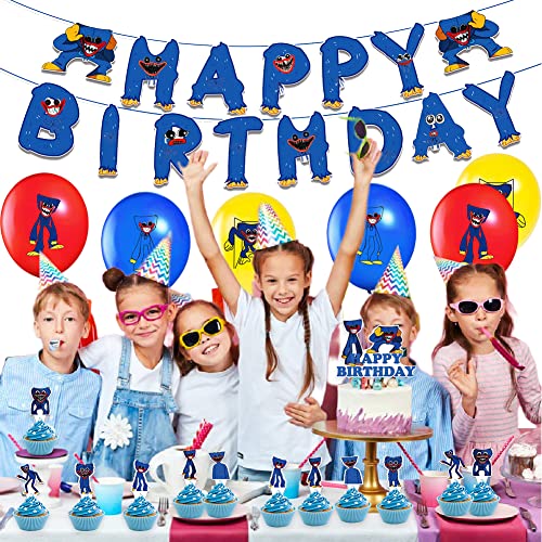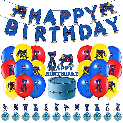 BESTZY Poppy Playtime Decorazioni di Compleanno Palloncini Huggy Wuggy Forniture Feste Cake Topper Banner Palloncino per Bambini Compleanno Feste