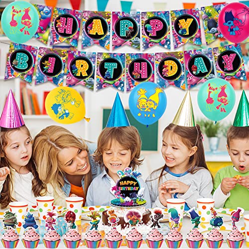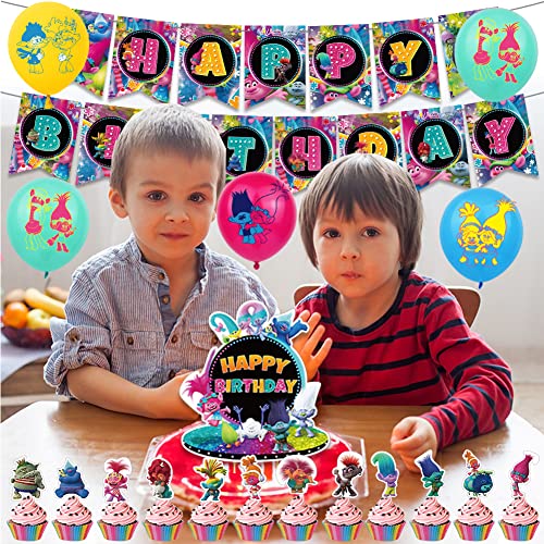 BESTZY Trolls Palloncini Compleanno Trolls Compleanno Decorazioni Happy Birthday Banner Cake Topper Palloncini per Bambini Feste di Forniture 30Pcs