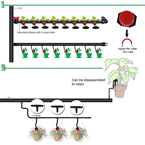 BETESSIN 100pz Gocciolatore a Goccia Micro Sistema Irrigazione Automatico Tubo Gocciolatori Valvola Filtro Giardino Prato