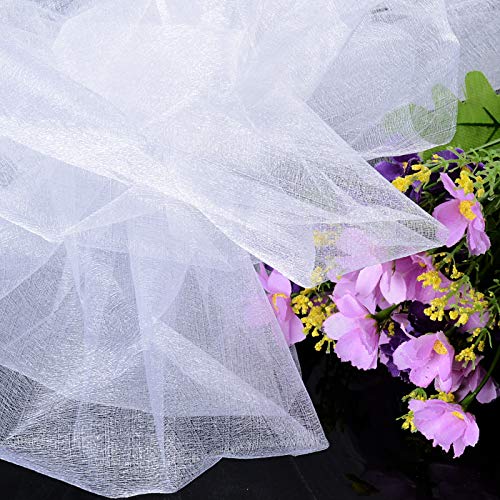 BETESSIN (10m * 48cm) Rotolo Tulle Organza Runner da Tavolo Bobina Decorazione Confetti Fai da Te per Feste Matrimonio Compleanno Laurea Bomboniere (Bianco)