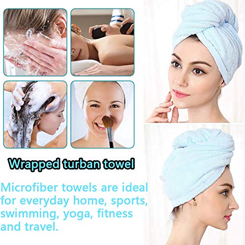 BETOY Asciugamano Capelli a Turbante 4 Pezzi Capelli a Turbante in Microfibra Asciugatura Rapi da Ultrassorbente con Pulsante per Tutti i Tipi di Capelli e Lunghezze, Blu Rosa Viola Giallo