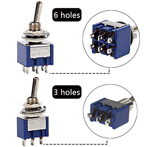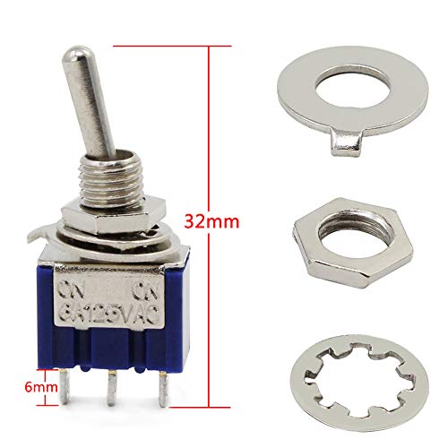 BETOY 10 Pezzi Mini interruttore a levetta, per auto professionale, 6A 125V AC ON-ON 2 cifre 3 pin, con Tappo di Copertura Impermeabile Blu, per auto, camion, cruscotto, modifica elettrica.
