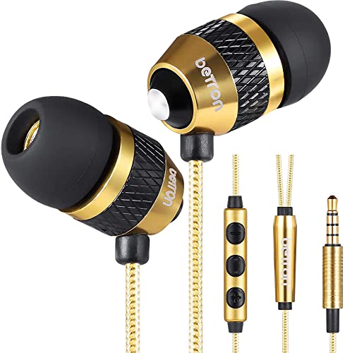 Betron B25 - Auricolari con microfono e controllo del volume, con cavo da 3,5 mm, isolamento acustico, colore: Oro