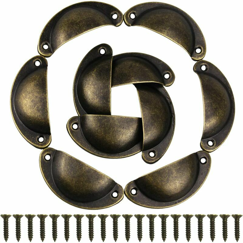 Pomello per porta dell'armadio per cassetti in metallo a forma retrò da 10 pezzi Prodotto con 20 viti. Nuovissimo e di alta qualità. Forma a conchiglia con particolare design antico. Pomello vintage per decorare il cassetto. Perfetto per il tuo armadio, cassetto, armadietto, cassettiera, credenza, ecc. Qui su Dimensioni: 82 x 35 mm 10 pezzi di manopole per porte in metallo per cassetti in metallo a forma retrò Nuovissimo e di alta qualità. Forma a conchiglia con uno speciale design antico. Perfetto per scarpiera, libreria, cassetto, armadio, pattumiera, ecc. Specifiche Dimensioni: 82 x 35 mm < p>Materiale: ferro Colore: ottone antico Confezione: 10 manici a conchiglia