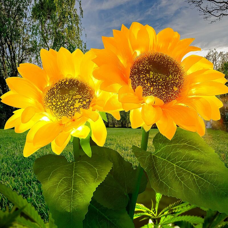 Decorazione perfetta: l'esclusiva luce solare a forma di girasole è la scelta migliore per la decorazione del tuo giardino, adatta a molti luoghi come veranda, finestra, balcone esterno, giardino, negozio, ristorante, ufficio, chiesa, palcoscenico, centro di accoglienza, ecc. Decorazione perfetta, l'illuminazione crea un'atmosfera accogliente. Resistenza all'acqua IP65 - La robustezza garantisce prestazioni di lunga durata nella maggior parte delle condizioni atmosferiche e può funzionare normalmente in condizioni meteorologiche avverse, in particolare forti piogge, neve e grandine. Tuttavia, non è adatto per l'immersione prolungata in acqua. Girasole grazioso: nuovo design del girasole artificiale con fiori e foglie più grandi, materiale di seta, colori più chiari, stabile e non facile da sbiadire, elevata flessibilità, durata, risparmio energetico e tutela dell'ambiente. Lunghi orari di lavoro: scottarsi non è facile. Può essere usato come decorazione da giardino per tutta la vita.