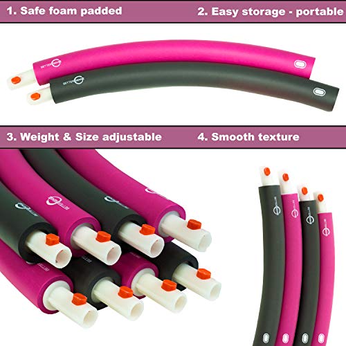 HOOLA HOOLA imbottito in schiuma liscia: riporta il divertimento dell'infanzia: questo hula hoop imbottito in schiuma liscia per l'esercizio è un modo confortevole, efficace e divertente per bruciare fino a 403 calorie in un'ora. Questo kit hula hoop offre allenamenti più completi e divertenti. Inizia a cercare, brucia più calorie e ottieni la figura desiderata