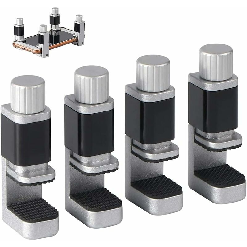 Set/4 pezzi di fissaggio con clip in metallo regolabile, fissaggio con morsetto per colla, strumento di riparazione dello schermo LCD per smartphone, computer, laptop, tablet, ebook MATERIALE DI ALTA QUALITÀ - Realizzato in alluminio di alta qualità con gommini protettivi per tenere in posizione lo schermo LCD appena sostituito. Non si gonfia né perde. MAGGIORE FORZA E ADATTABILITÀ - Fornisce una vestibilità regolabile e sicura per smartphone, tablet, laptop, Macbook, ebook CARATTERISTICHE: Le misure: 7 cm x 1,5 cm x 2,5 cm / 2,75 pollici x 0,5 pollici x 1 pollice. Altezza massima di apertura: 15 mm / 0,5 in Colori: Metallo / Nero Contenuto della confezione: 4 clip per la stampa dello schermo del telefono.