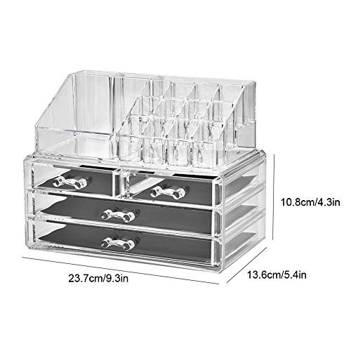 Betued Organizer per Trucco Trasparente Acrilico, Organizer per Cosmetici, Contenitore per Gioielli con 4 cassetti di stoccaggio Contenitore per Cosmetici