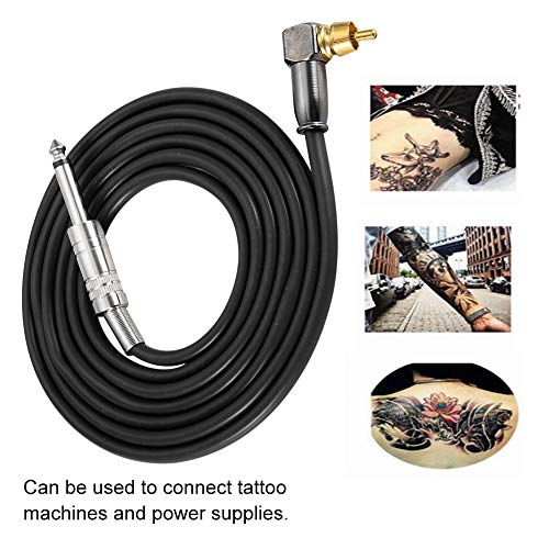 Betued Tattoo Clip Cord, 4 Colori Silicone Hook Line per 90 Gradi RCA Interface Tattoo Machine Kit di conversione di Alimentazione, 1.85M Mono Plug Tattoo Power Supply Tattoo Wire(Negro)
