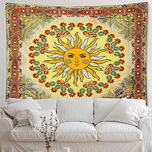 Betylifoy Arazzo del Sole Mandala Psichedelico da Appendere a Parete Arazzo Tarocchi Astrologia Trippy Arazzo Hippie Wall Art Arazzo per Camera da Letto Estetica Party Decor (Giallo, 148x200cm)