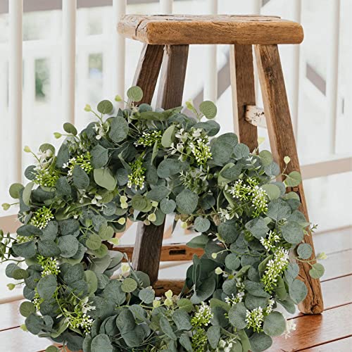 【Aspetto realistico】: Ogni foglia di eucalipto grigio-verde ha una vena trasparente abbinata a semi di gipsofila bianchi e verdi. Rende la tua ghirlanda realistica e lussuosa.