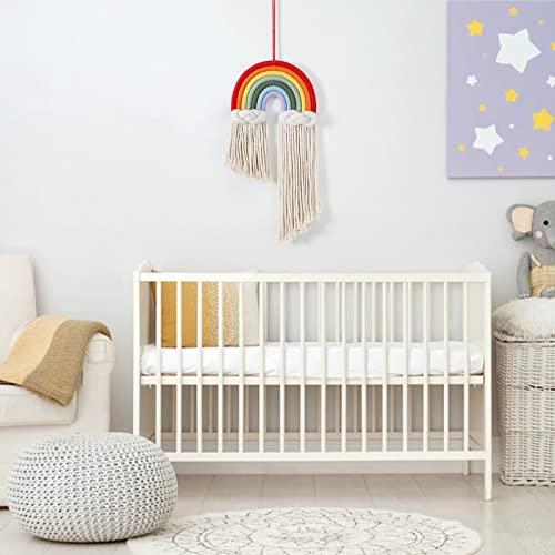 Betylifoy Macrame Arcobaleno da Appendere a Parete Arazzo Colorato in Tessuto con Nappa Arcobaleno e Nuvole Decorazione da Parete per la Stanza dei Bambini della Scuola Materna