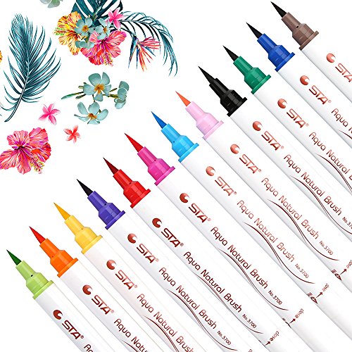 Beupro, Set di penne con punta a pennello, 12 colori, effetto acquerello, ideale per libri da colorare, manga e calligrafia