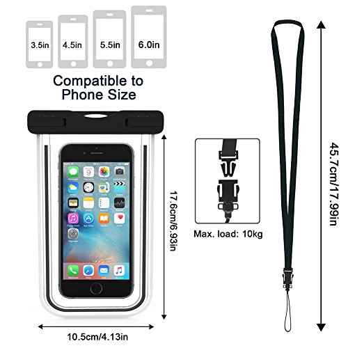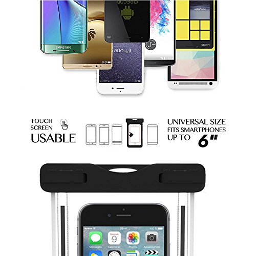 ♛ Custodia Impermeabile Smartphone: Fornisce la prevenzione completo dall'acqua, dalla neve e dalla polvere ai vostri telefoni cellulari, carte di credito, documenti e così via. Worry-libera per il nuoto, pesca, canottaggio, snorkeling e altre attività. Sensibile al tocco. Facile da toccare lo schermo del dispositivo. Cancella per rispondere al telefono. Entrambi i casi trasparenti consentono di scattare foto di buona qualità e video subacquei.