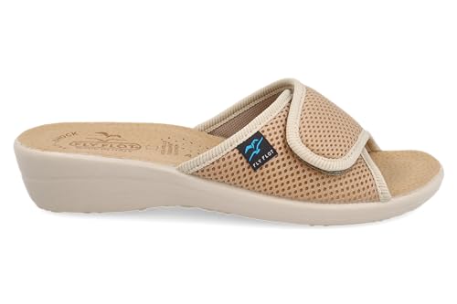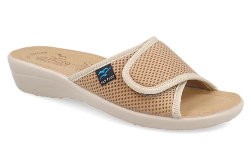 Fly Flot Bevilacqua, Ciabatte Donna in Rete Elastica, Aperte con Velcro Unico Regolabile, Sottopiede Imbottito in Pelle, Sandali, Beige, 39 EU