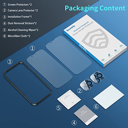 Bewahly Opaco Vetro Temperato Compatibile con iPhone 13 Pro Max [6.7 Pollici], 2 Pezzi Pellicola Protettiva e 2 Pezzi Pellicola Fotocamera, 9H Vetrino Protezione Schermo con Cornice di Allineamento