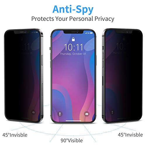 Bewahly Privacy Vetro Temperato iPhone 12 Pro Max [2 Pezzi], 3D Copertura Completa 9H Durezza Pellicola Protettiva in Vetro Temperato Anti-Spy con Kit di Installazione per iPhone 12 Pro Max 6.7" -Nero