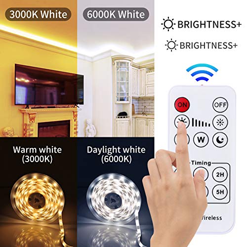 Bewahly Striscia LED Dimmerabile 10M, Strisce LED Bianco Caldo 3000K & Bianco Freddo 6000K, Striscia LED Bianca con RF Telecomando, Luce LED Adesive per Illuminazione Interni, Camera da Letto, Cucina