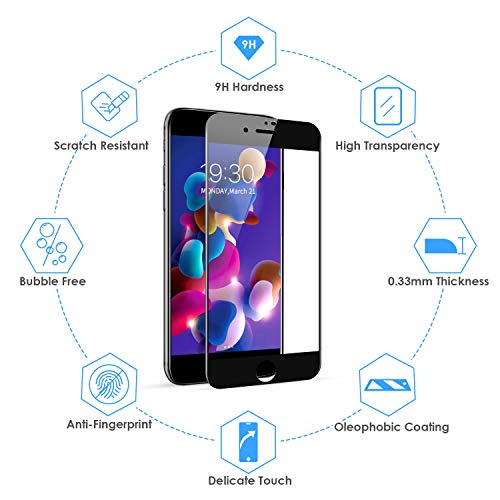 Bewahly Vetro Temperato iPhone 8 Plus / 7 Plus [2 Pezzi], 3D Copertura Completa Pellicola Protettiva in Vetro Temperato con Kit di Installazione per iPhone 8 Plus / 7 Plus (5,5 pollici) (Nero)
