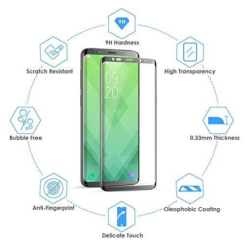 Bewahly Vetro Temperato Samsung Galaxy S8 [2 Pezzi], 3D Curvo Copertura Completa Pellicola Protettiva in Vetro Temperato con Kit di Installazione per Samsung S8 [9H Durezza, Alta Definizione] - Nero