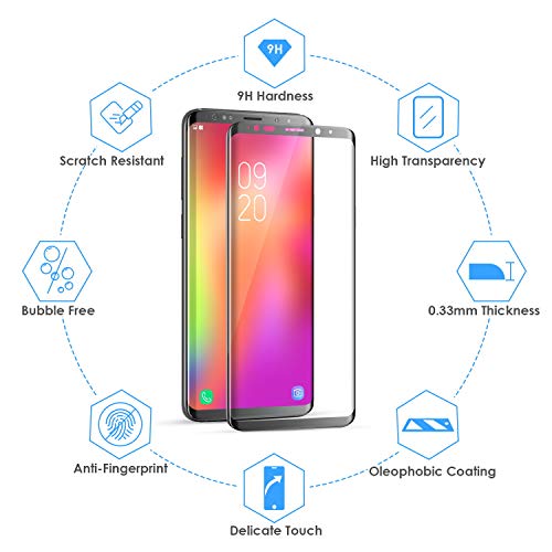 Bewahly Vetro Temperato Samsung Galaxy S8 Plus [2 Pezzi], 3D Curvo Copertura Completa Pellicola Protettiva in Vetro Temperato per Samsung Galaxy S8 Plus [9H Durezza, Alta Definizione] - Nero
