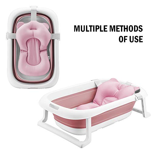 BEWAVE Vasca da Bagno per Bambini, Vasca da Bagno Pieghevole per Bambini, Pieghevole Bagno per Neonati Bambini Supporto con Cuscino per 0-2 anni, Rosa