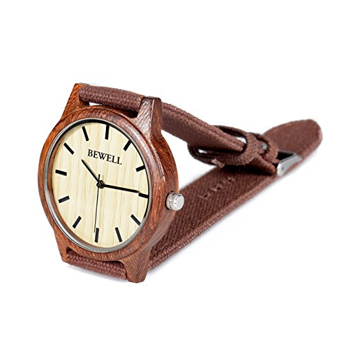 BEWELL orologio da polso in legno a quadrante in legno leggero di sandalo dell'orologio del quarzo della lega di legno degli uomini di 124B