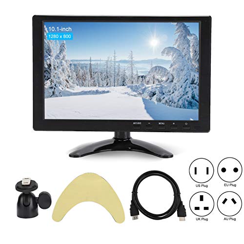 Bewinner Display LCD HD da 10,1 Pollici, Monitor Universale 1280x800 16:10, Supporto 1080P/HDMI/VGA/AV/BNC, Monitor Multifunzione LCD TFT a 130 ° per Raspberry Pi/X-box/360/PS4/CCTV(UE)