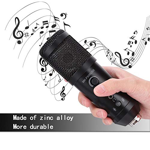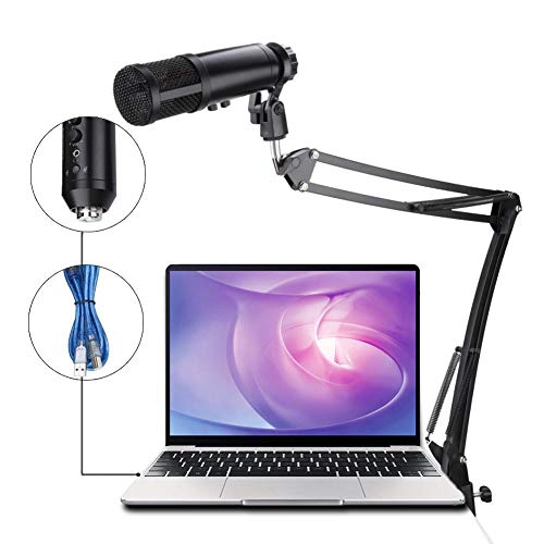 Microfono a condensatore per PC Con interfaccia di uscita per cuffie indipendente, supporto per auricolari o cuffie per il monitoraggio.Plug and play, supporto per windows / linux / mac, ecc. Realizzato in lega di zinco: più durevole.
