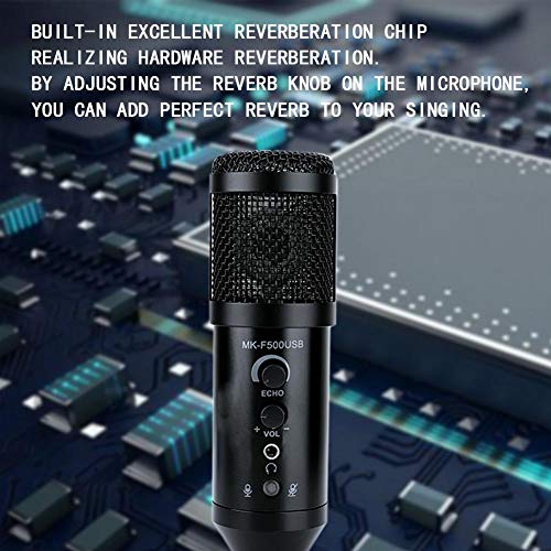 Bewinner Microfono a condensatore con Registrazione, Riverbero Microfono a condensatore con Staffa Microfono con Registrazione USB per Notebook Computer Desktop Registrazione Audio