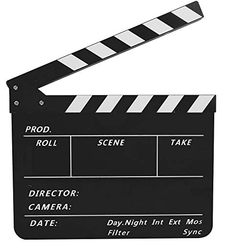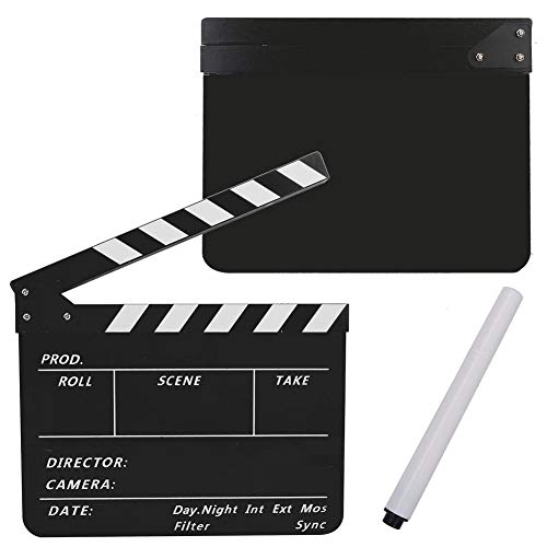 Bewinner Regista Acrilico Scene Clapboard Director's Film Clapboard TV Film Action Board Film Cut Prop con Penna, Facile da Pulire Scene d'azione Clap Board Ardesia (Nero Bianco)