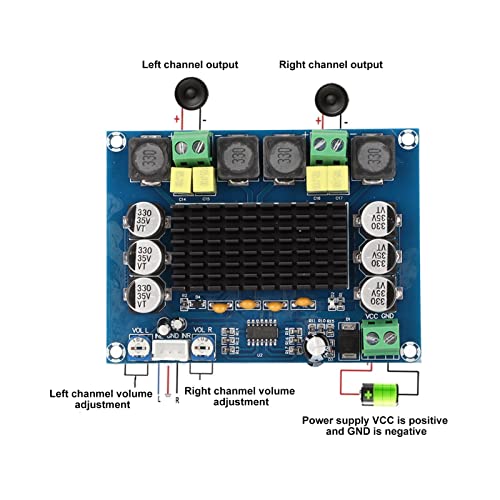 [TENSIONE DI LAVORO E POTENZA DI USCITA] La scheda dell'amplificatore a doppio canale utilizza l'alimentazione CC 12‑24 V, supporto massimo 2x120 W di uscita a 2 canali.