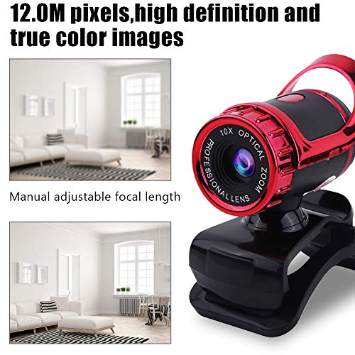 Bewinner Webcam con Microfono, 12.0 M Pixel Supporto Fotocamera USB 2.0 Windows XP/win2003/win7/win8/Vista 32 Bit, HD 360 ° con Rotazione del Supporto Videocamere(Rosso)