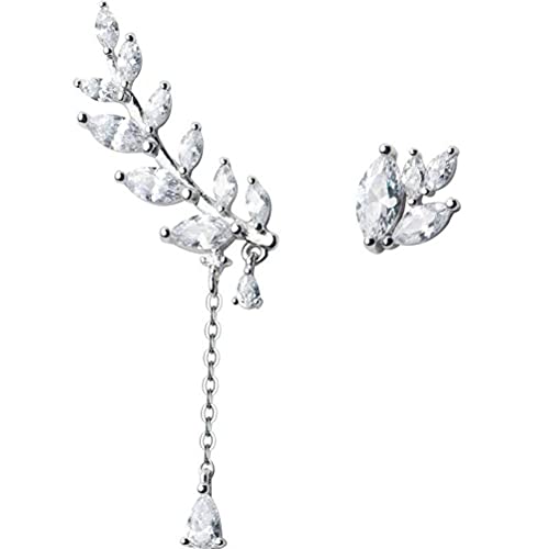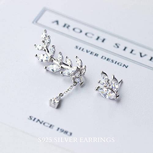 BEWITCHYU Orecchini Asimmetrici in Argento S925, Orecchini da Donna con Foglie Di Diamanti, Orecchini, OrecchiniArgento 925, Piccolo
