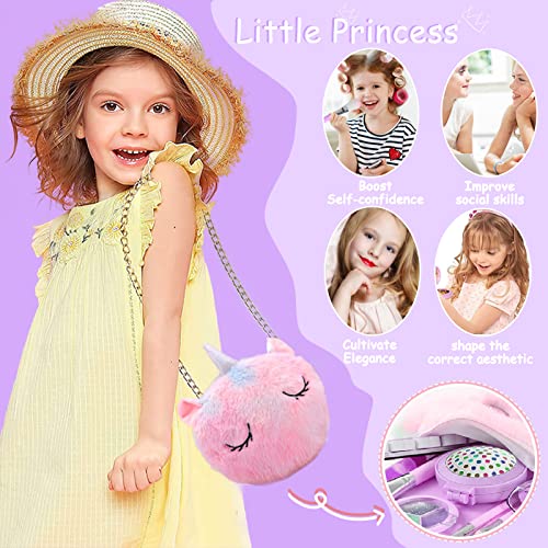 Graziosa borsa per cosmetici portatili: la meravigliosa borsa per cosmetici per piccole principesse ha una grande capacità, che consente alla tua bambina di organizzare e raccogliere giocattoli cosmetici sparsi. Può essere portato in giro come una borsa, facile da tirare per consentire alle bambine di giocare ovunque con i loro amati giocattoli per il trucco.