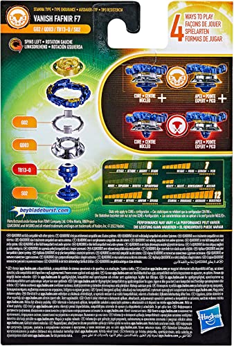 PERSONALIZZARE L'AFFRONTAMENTO: Include la trottola Beyblade Burst QuadDrive Vanish Fafnir F7 G02 QD03 TB13-Q S02 a rotazione sinistra e un lanciatore. È possibile modificare il tipo di trottola configurandola in modalità Centro e Punta (tipo equilibrio) o in modalità Centro+ e Pointe+ (tipo resistenza)