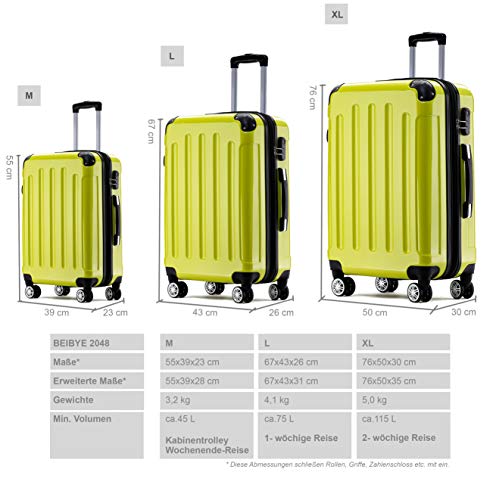 Beybye, valigia rigida trolley a ruote gemellate, codice 2048, valigia da viaggio nelle misure M-L-XL, set in 17 colori, verde, XL