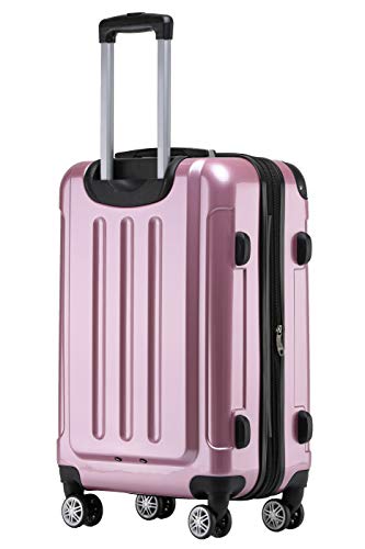 Beybye, valigia rigida trolley a ruote gemellate, codice 2048, valigia da viaggio nelle misure M-L-XL, set in 17 colori, Rosa, L