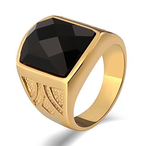 Beydodo Anelli Uomo Acciaio, Anello con Incisione Personalizzata Anello Solitario Pietra Nera Anello per Uomo Misura 25