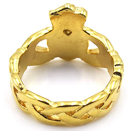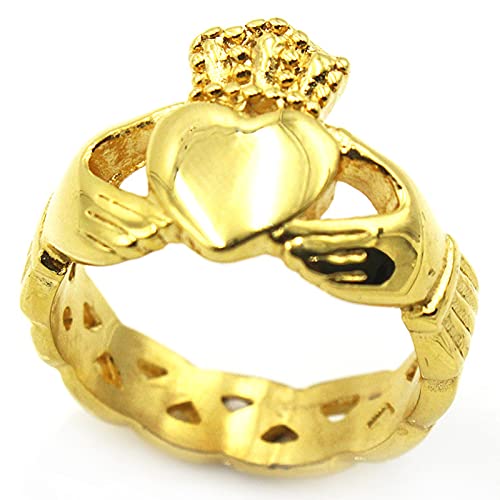 Beydodo Anelli Uomo Acciaio, Anelli Personalizzato Incisione Punk Anello Claddagh con Corona D'Oro E Cuore Misura 17