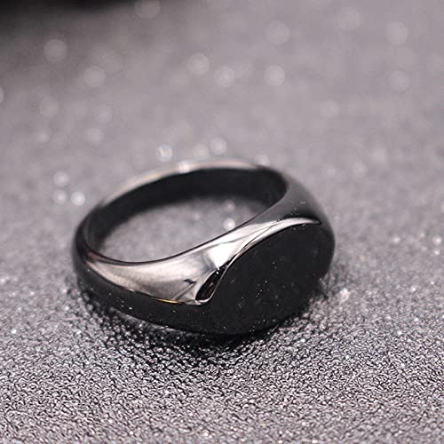 Beydodo Anello a Fascia Uomo Acciaio, Anello con Incisione Uomo Punk Anello con Sigillo Piatto Ovale Nero Misura 17