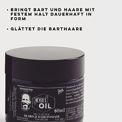 Beyer's Oil Beard & Hair Pomade Verbena, 60 ml, pomata per barba e capelli, 100 naturali, fatta a mano in Baviera