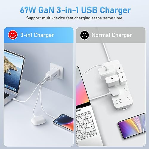 【Alimenta 3 Dispositivi Contemporaneamente】Con 2 porte USB-C e una porta USB-A, il 67W caricatore USB C 3 Ports BEYIMEI offre un'enorme potenza di ricarica di 67W, sufficiente per caricare rapidamente tre dispositivi come telefono, tablet e laptop contemporaneamente!