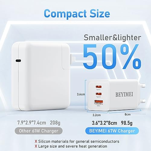 BEYIMEI Caricatore USB C 67W,3 Porte PD3.0 GaN Caricabatterie Rapido Tipo C Alimentatore con Cavo USB C 100W per MacBook Pro Air Dell XPS iPhone iPad Pro Air Pixel Samsung Galaxy S23 Ultra Plus