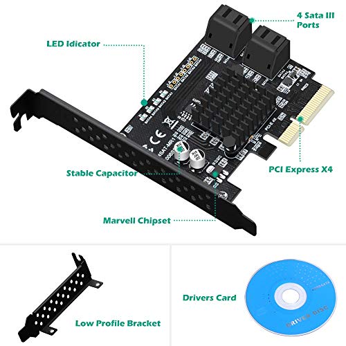 BEYIMEI Scheda di espansione Raid SATAIII a 4 Porte,Scheda di Controllo da PCI-E a SATA3.0,Scheda Raid del Disco Rigido IPFS estesa, Supporto Raid 0, Raid 1, Raid 10, HyperDuo, Chip Marvell 88SE9230