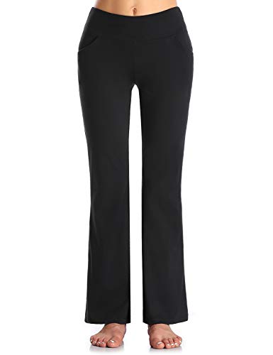 MOVE BEYOND Donna Pantaloni Bootleg da Yoga con 4 Tasche a Vita Alta Controllo di Pancia, Nero, S