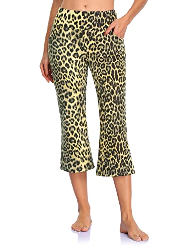 MOVE BEYOND Donna Pinocchietti Bootleg da Yoga con 4 Tasche a Vita Alta Controllo di Pancia, Leopard, L
