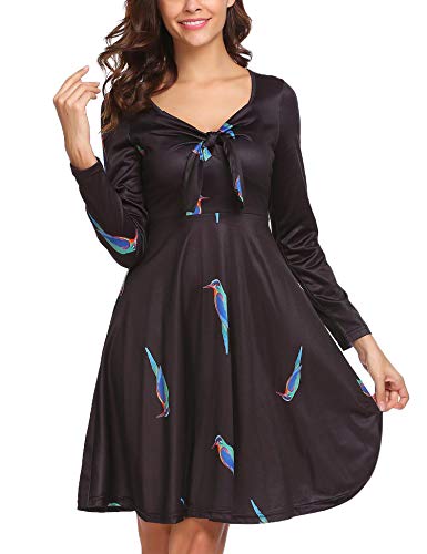 Beyove, abito elegante da donna, a maniche lunghe, scollo a V, in jersey, abito da cocktail, retrò, lunghezza al ginocchio, linea A